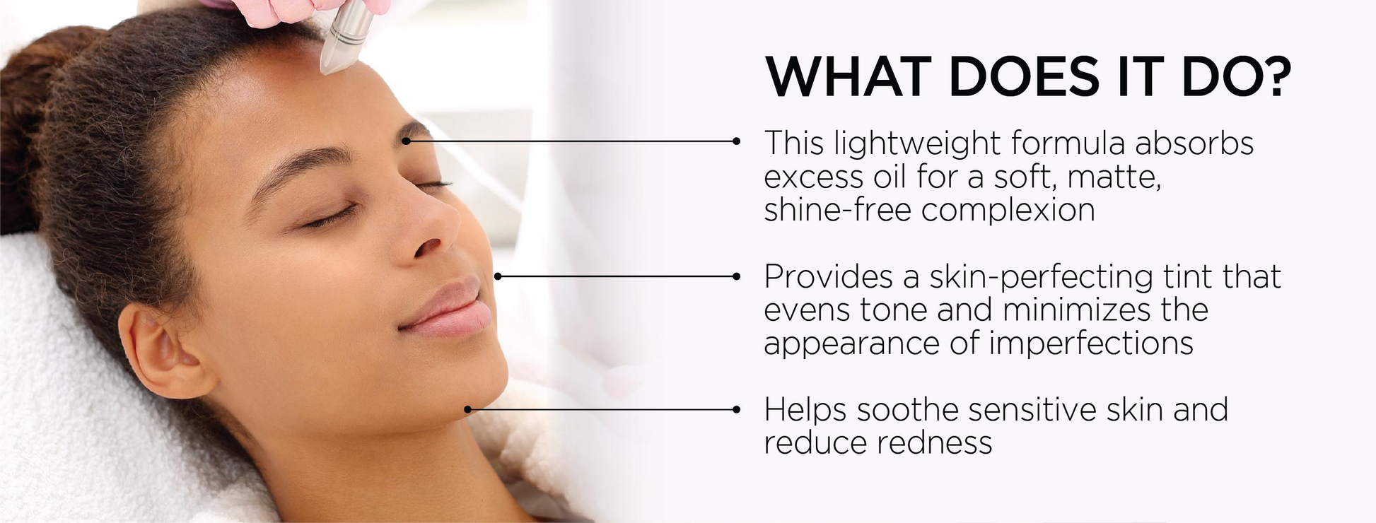 - This lightweight formula absorbs excess oil for a soft, matte, shine-free complexion
