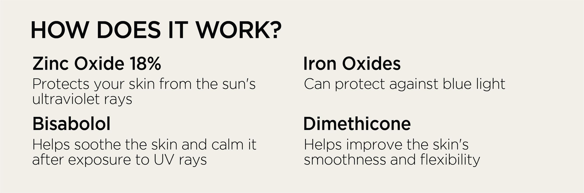- Provides a skin-perfecting tint that evens tone and minimizes the appearance of imperfections